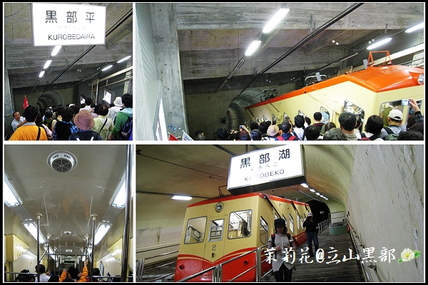 ▼由黑部平到黑部湖是要坐地下電纜車,這地下電纜車配合地型是做為傾斜的,雖然只有一節但可搭載的乘客還不少,此段路程約5分鐘就到了黑部湖。