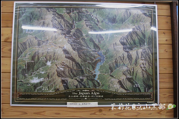 ▼晃了一小時後就準備去搭車了,在等待的時間就在車站內拍拍照,這張非賣品的地圖可清楚的看出立山連峰及黑部峽谷。
